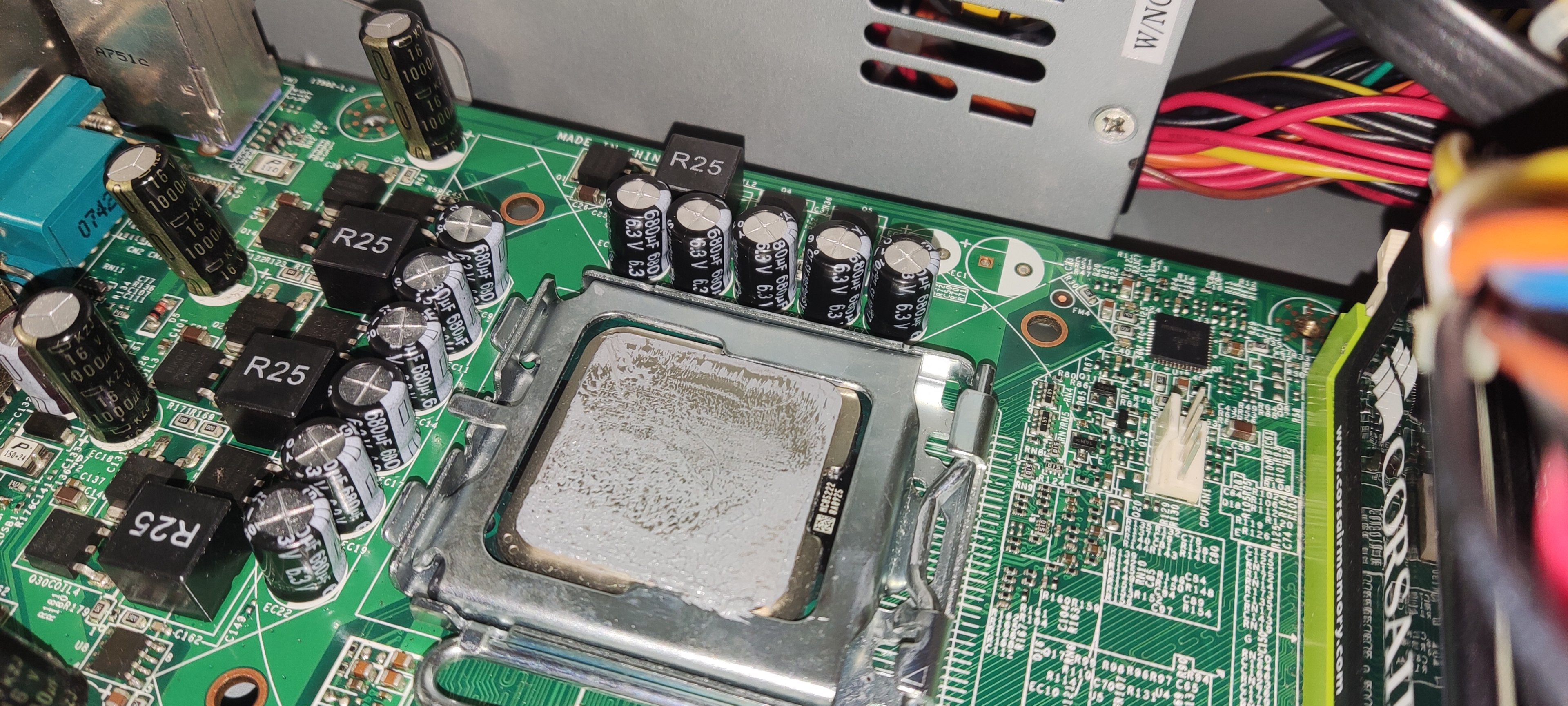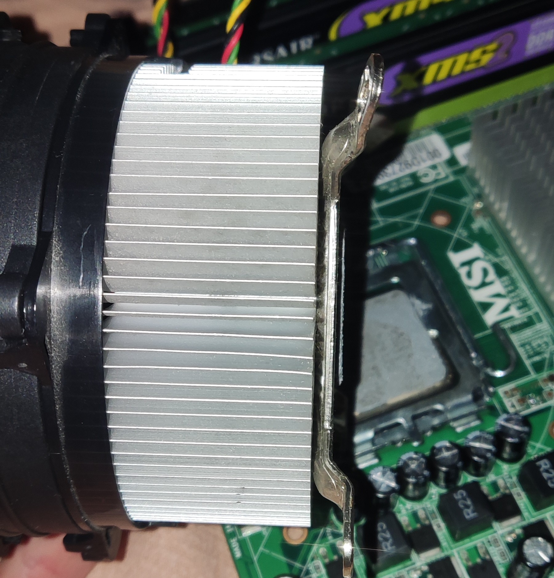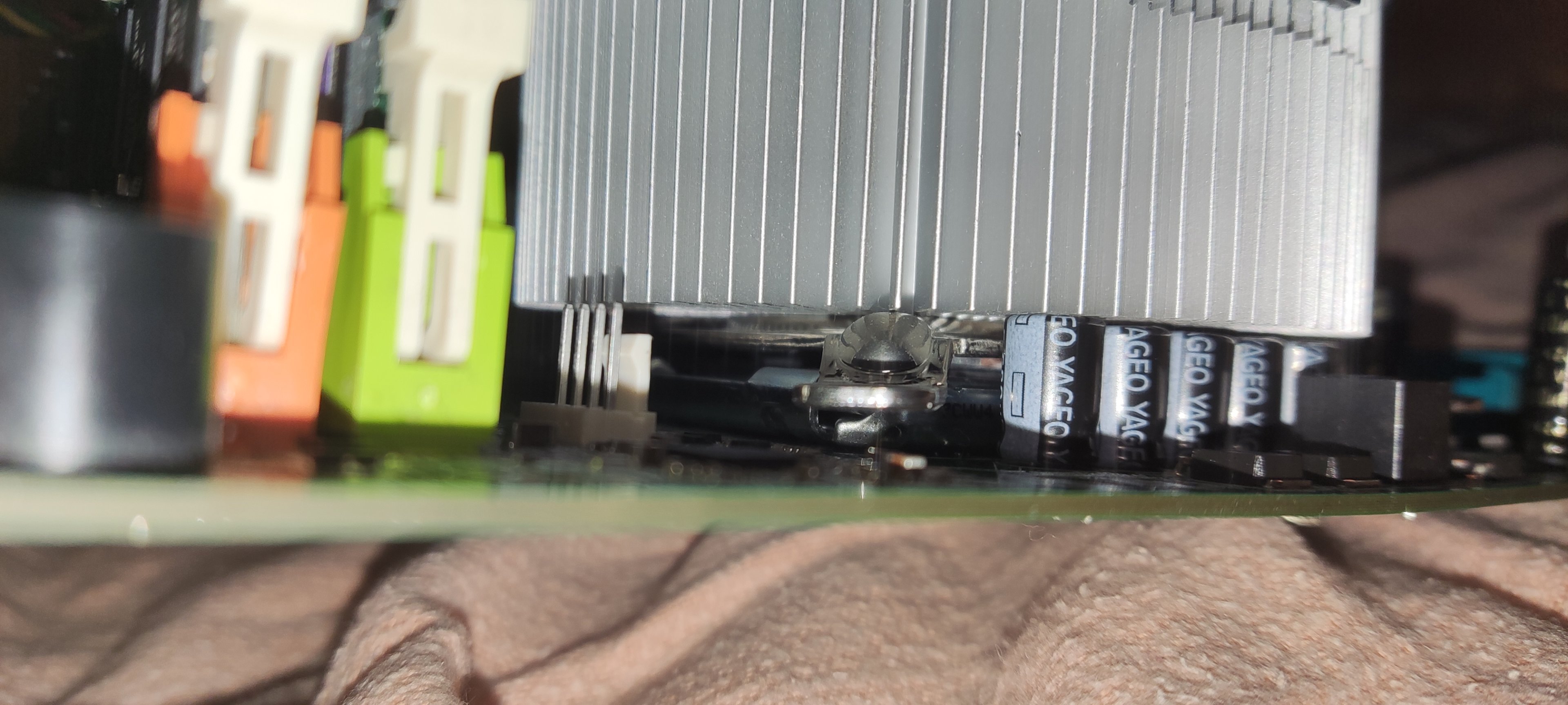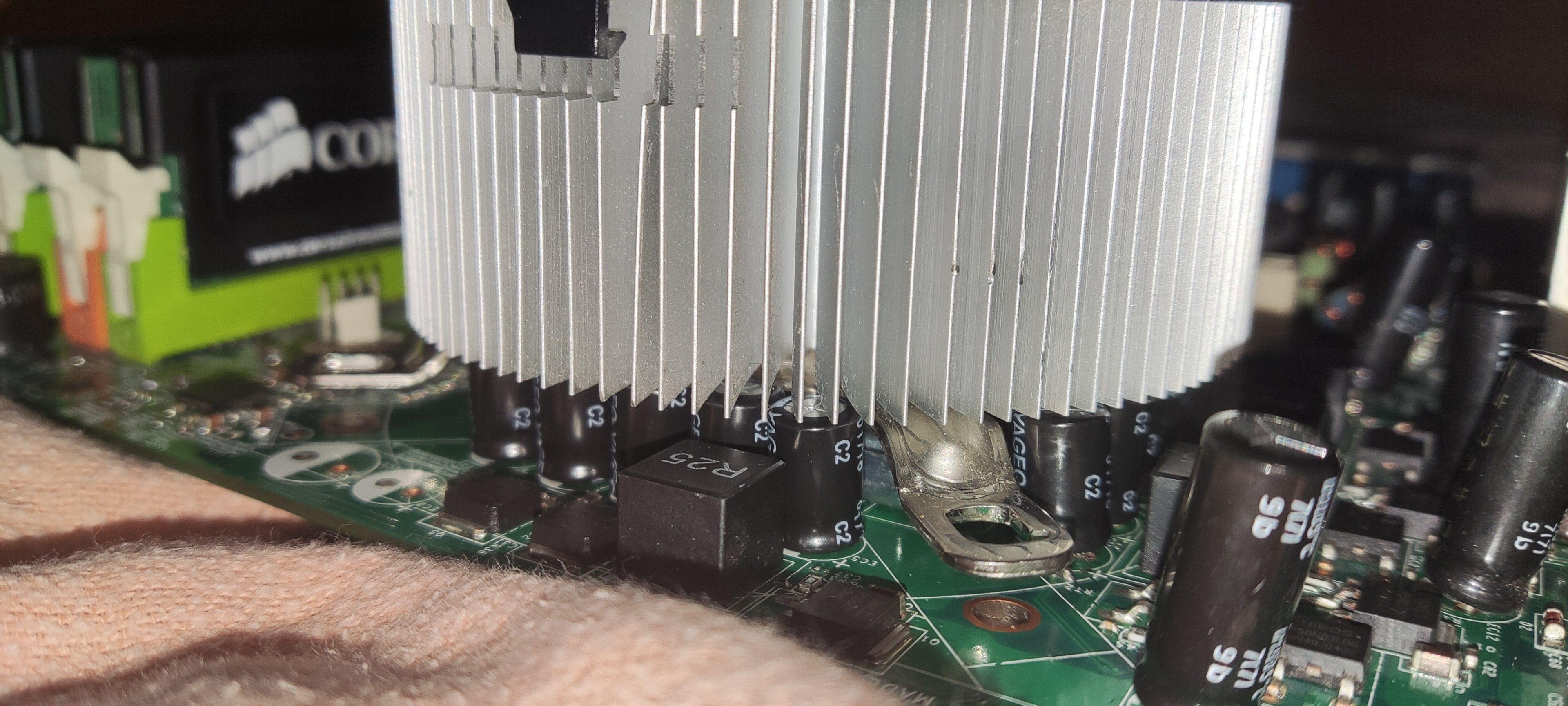Einziges Problem das ich nun noch habe, ist, dass die neuen Elkos ziemlich hoch sind ... Dadurch liegt der rieseige Kühlkörper nicht 100% auf der CPU auf ...