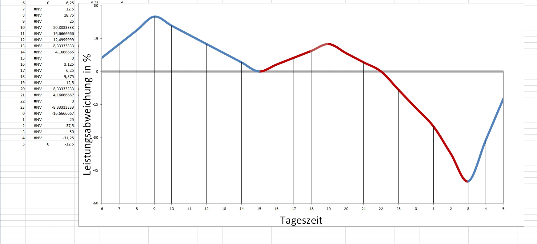 Ich habe einen Graphen erstellt mit den Werten aus der linken Tabelle.