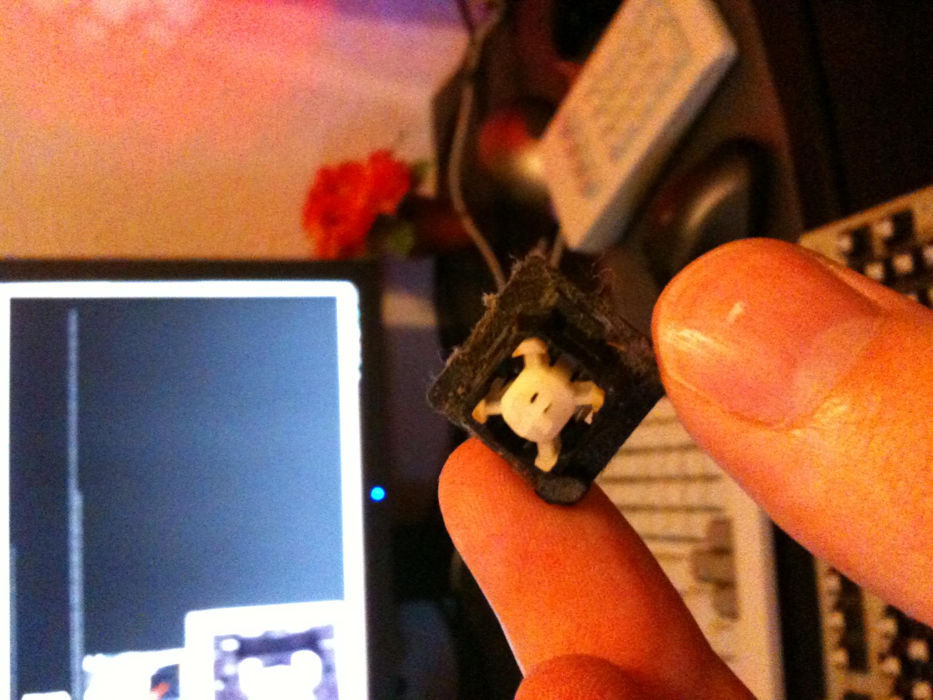 Die Schalter selbst sind nur auf die Metallplatte aufgesteckt... und lassen sich scheinbar gar nicht mal so schwer lösen - mit ein wenig Geduld. Den Kontakt stellen zwei Folien her, die auf die Metallplatte geklebt werden. Beim Betätigen der Taste wirkt nach ca. 2-3mm Hub ein Stößel auf die Folienkontakte und der Tastenanschlag wird registriert. Ansich simpel.