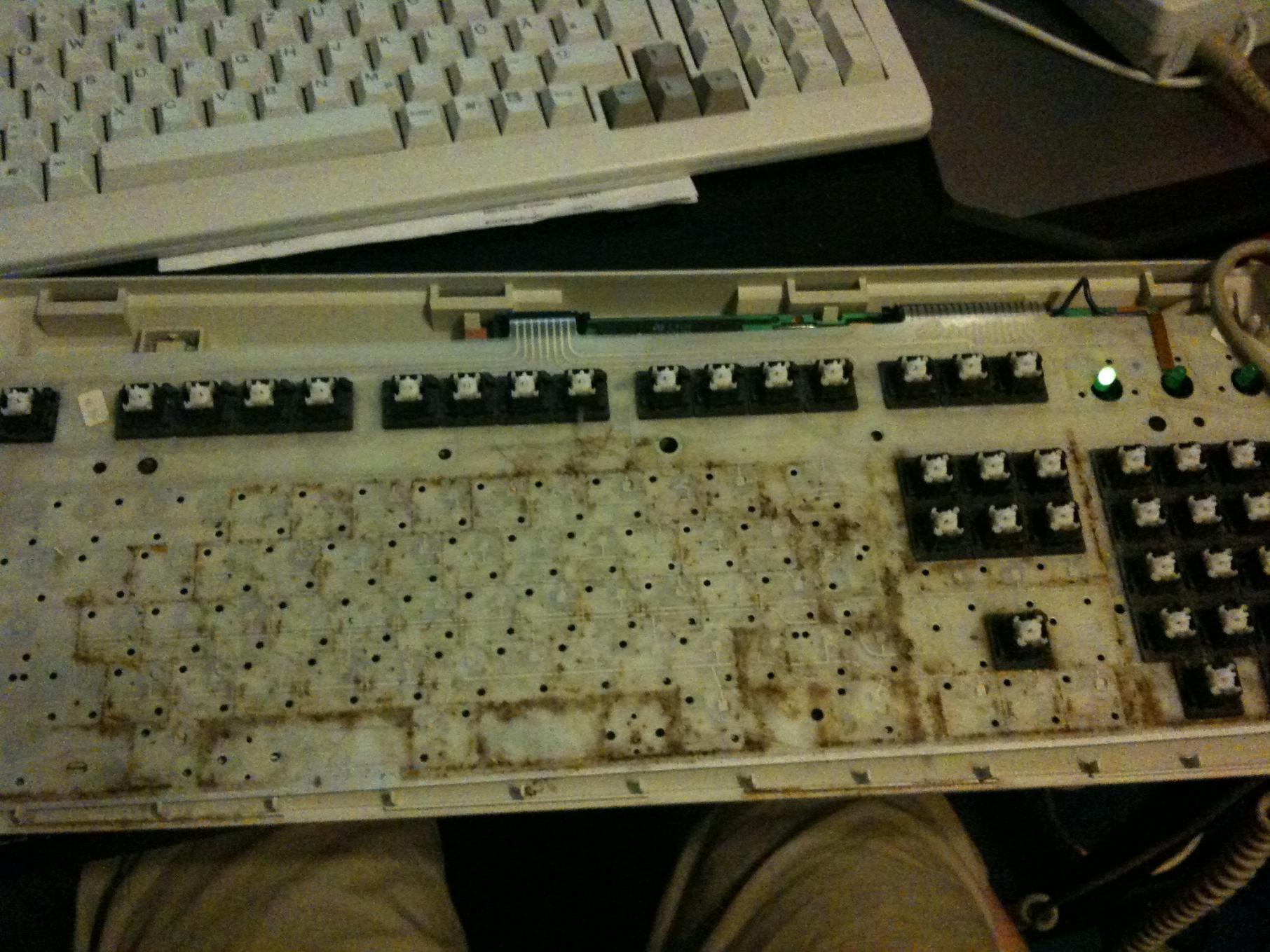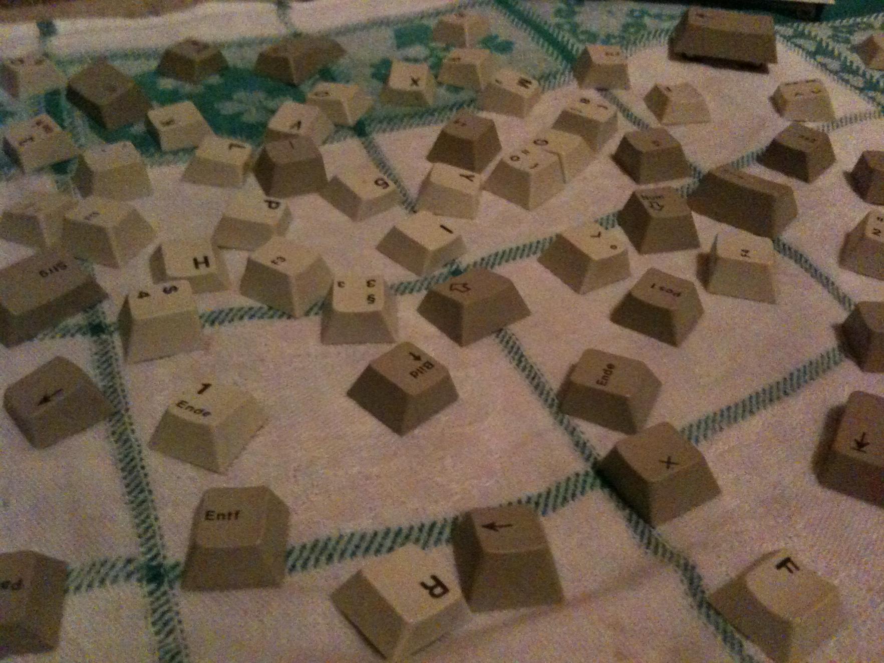 Alle Tasten scheinen noch zu funktionieren und da ich heute viel mehr über das Thema weiß, als vor ca. 8 Jahren, versuche ich, das zu beheben. Das Problem: Die meisten Tasten sind arg verklebt.