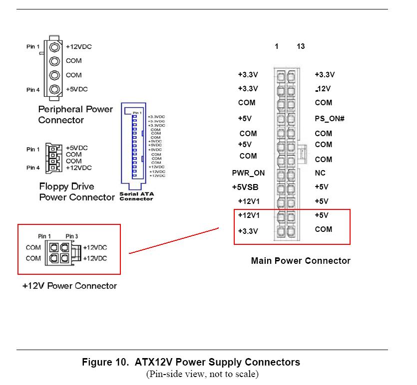 (+12V, +5V, +3.3V, und Masse) an, als am P4 Stecker (2x +12V , 2x Masse).
