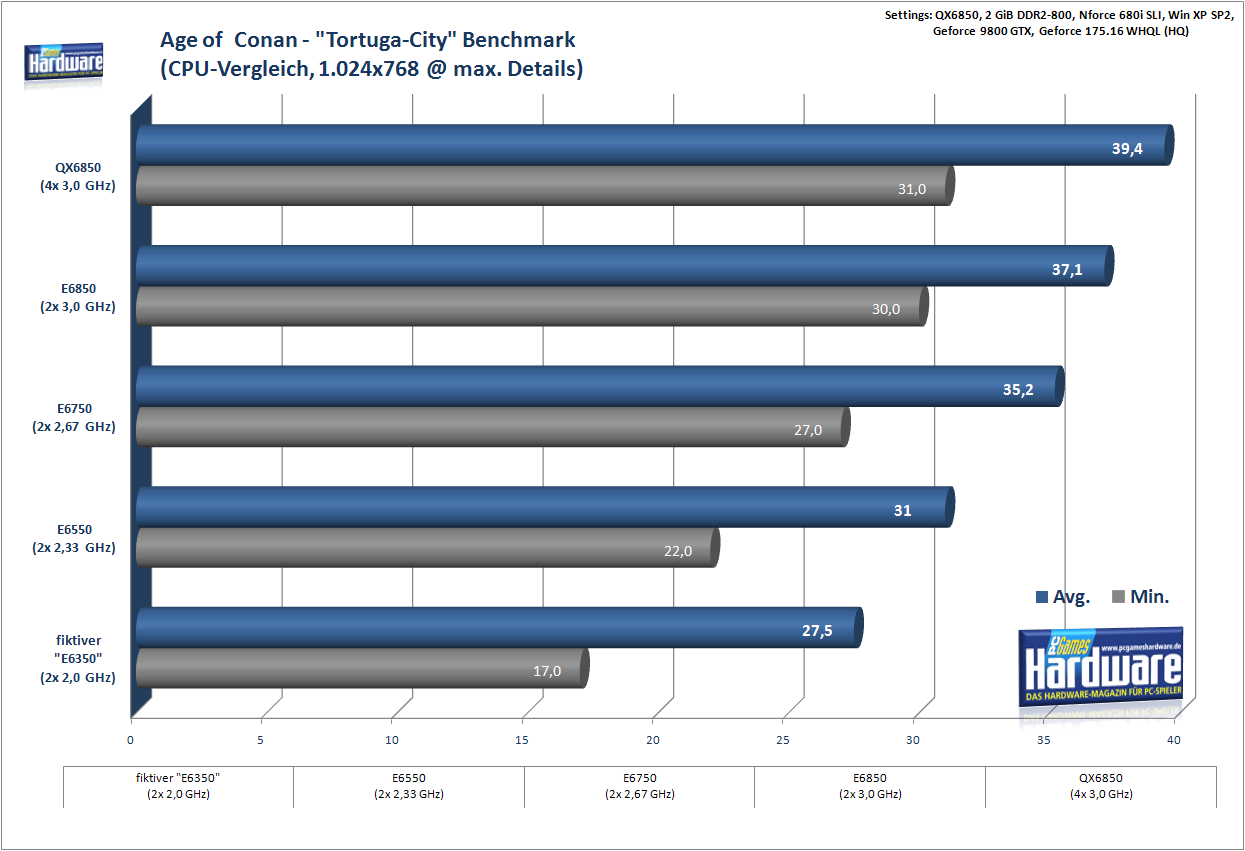 Für AoC muss es schon eine anständige CPU sein. Da durch die GPU schon viel verloren geht, würde ich für diesen Titel schon zu einem X² 6400+ oder E6750 raten. Ich habe die Werte selbst gemacht, kann also mit Bestimmtheit sagen, wie es sich ingame mit der jeweiligen CPU anfühlt.