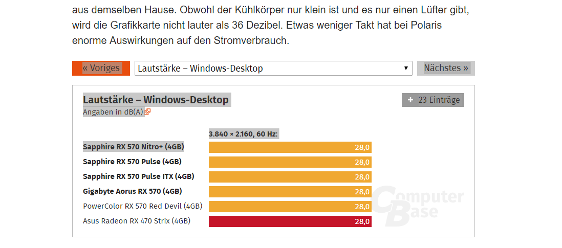 In dem Testbericht steht das die Karte im Desktop 28 dB Lautstärke erzeugt...