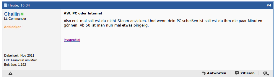 Eigentlich muss ich ihm danke, durch ihn bin ich immerhin auf dieses geniale Topic gekommen