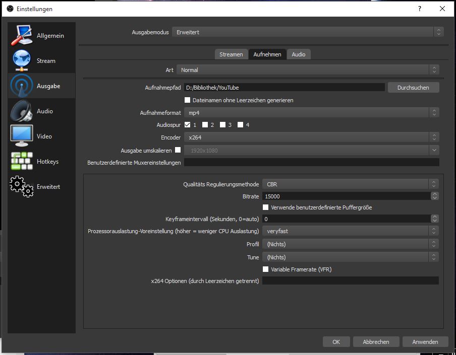 ich habe gerade ein Video mit OBS aufgenommen, hier mal meine Einstellungen: