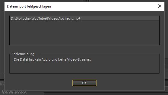 In VLC lässt sich das video auch gut angucken, sobald ich es aber in Premiere Pro laden möchte bekomme ich die Fehlermeldung "Die Datei hat keine Audio und keine Video streams". Habe ich jetzt falsche OBS einstellungen, nicht die aktuelle version von Premiere, liegts an dem Spiel...?