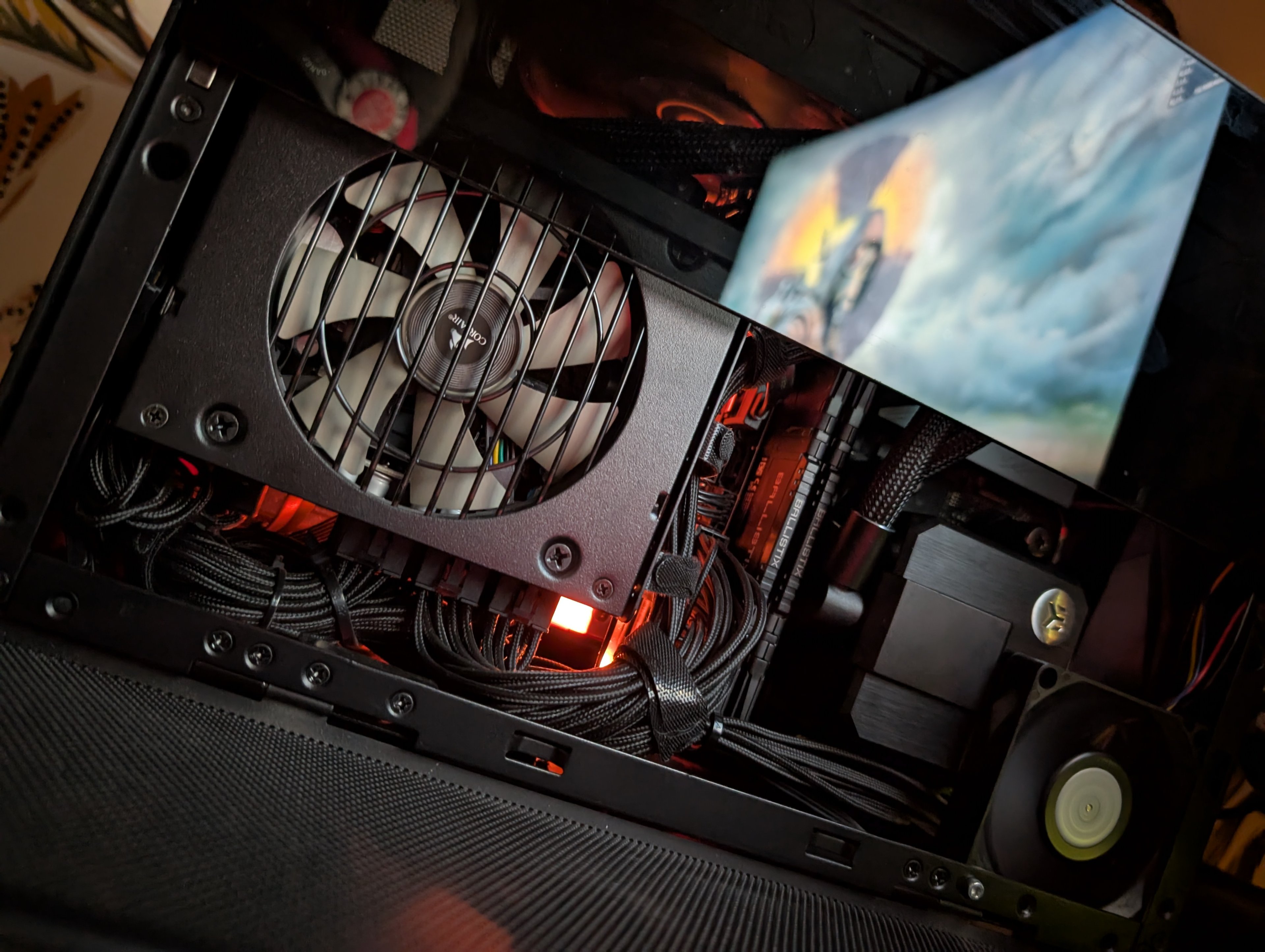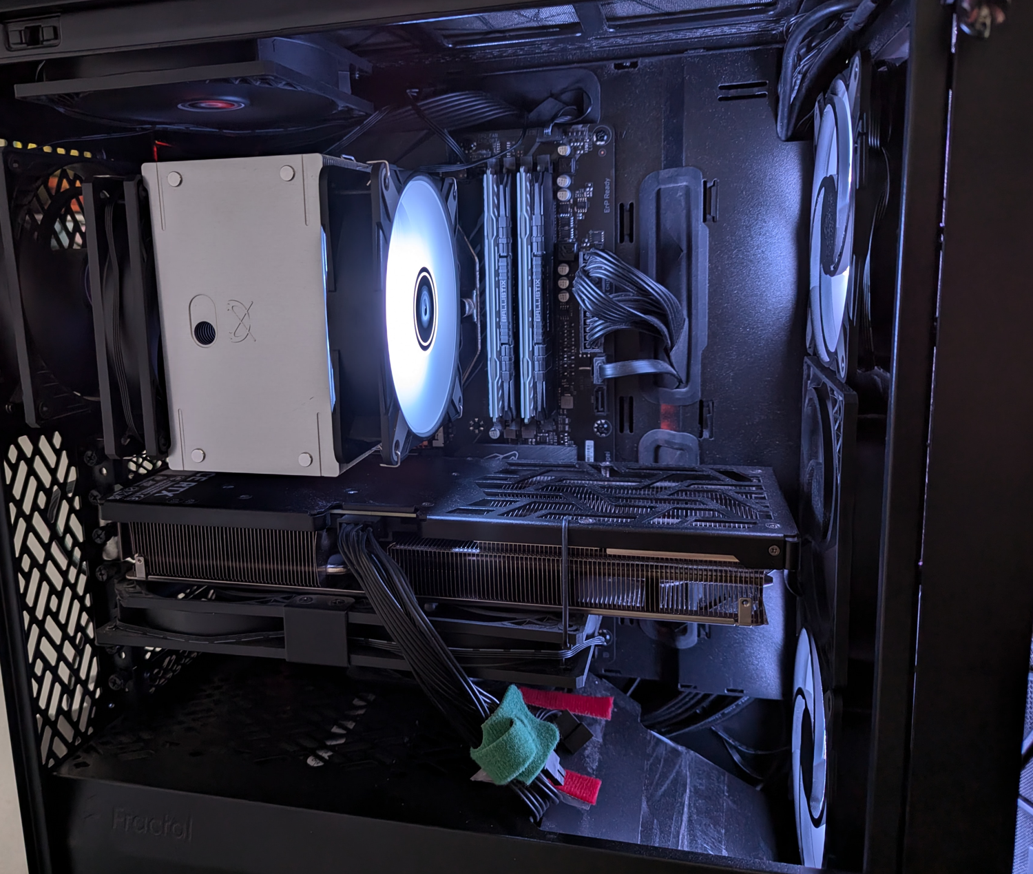 Bis dahin fristete mein PC sein dasein mit der Glasseite richtung Wand, da nach meiner superleisen 6700XT Red Devil, eine Palit 4070 mit Brummbärlüftern folgte, dieser Zustand musste natürlich per Ghettomod geändert werden. Ebenso passte der silberne Mugen 6 Import, nicht so ganz ins schwarze Gesamtbild.