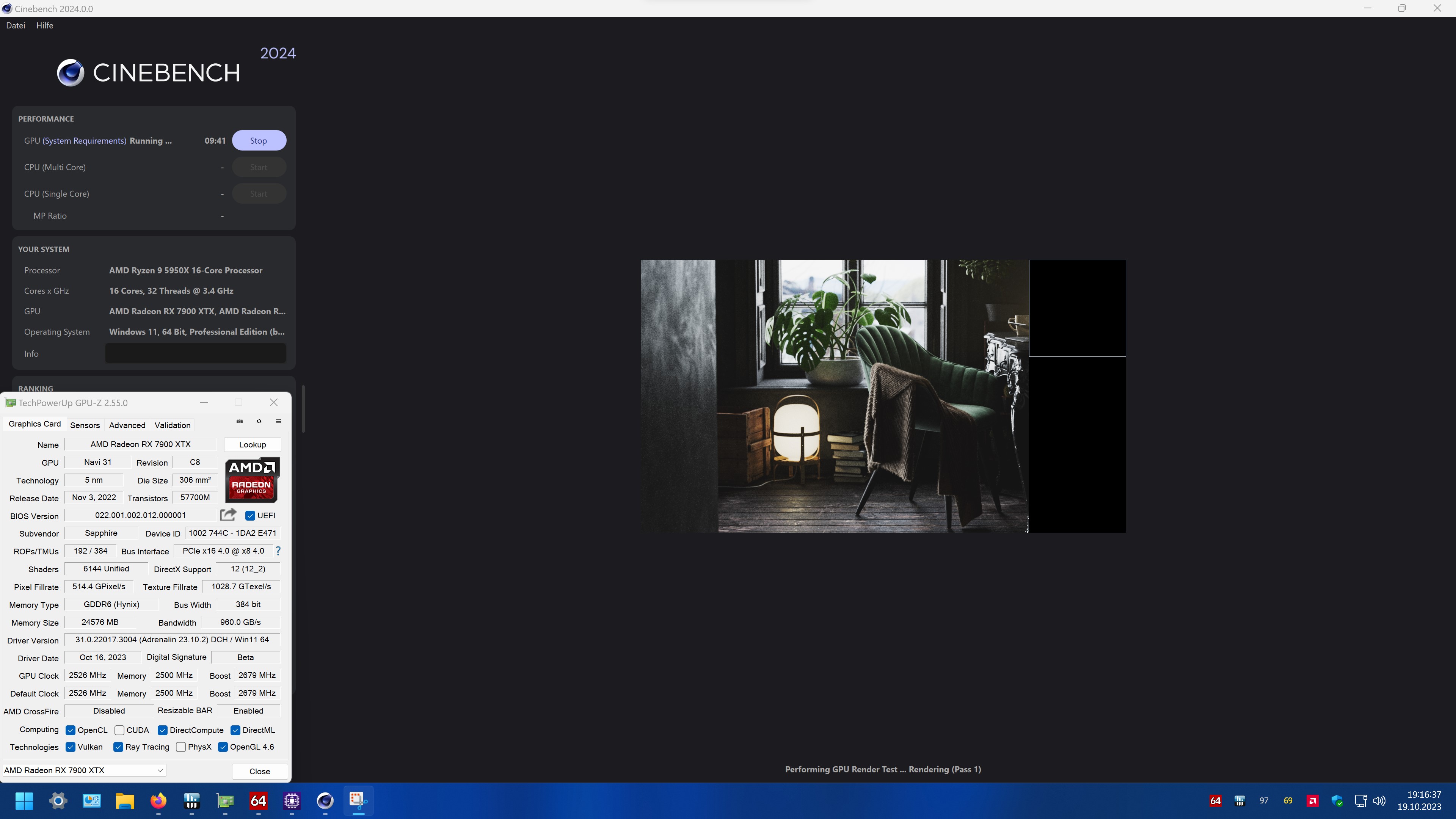 Ich hatte so einige Benchmarks ausprobiert, um zu schauen, wo das Problem ist: dabei hatte mich ein halbierter Cinebench 2024 GPU Testergebnis stutzig gemacht = nur ca. 7000