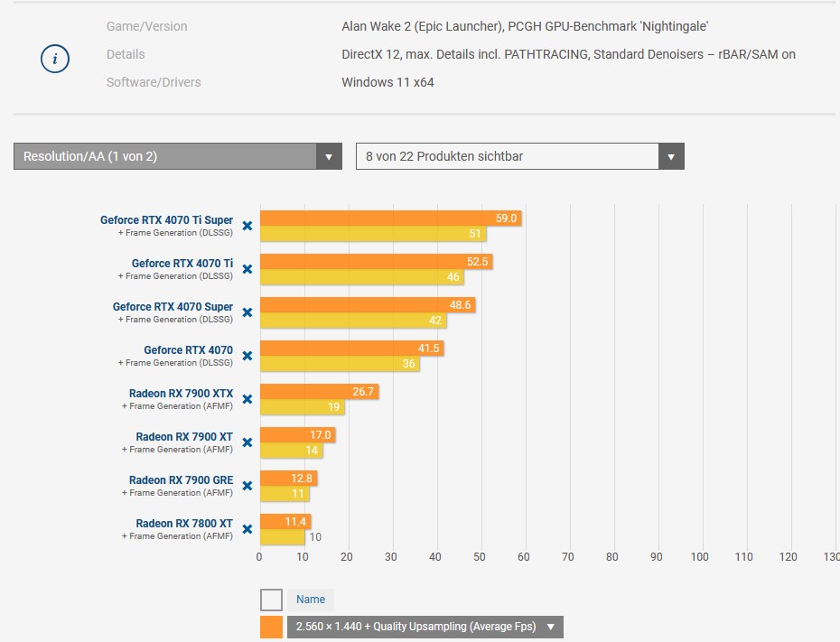 Ich will dir deine neue Karte nicht madig, im Gegenteil, ich denke, es ist eine sehr gute Karte ist. Aber der VRAM ist eben alles andere als üppig, was bei der Nutzung von Raytracing/Pathtracing mit Frame Generation heute schon zu Problemen führen kann, siehe Tabelle. Und genau wegen dieses Features werden die Nvidia Karten empfohlen.