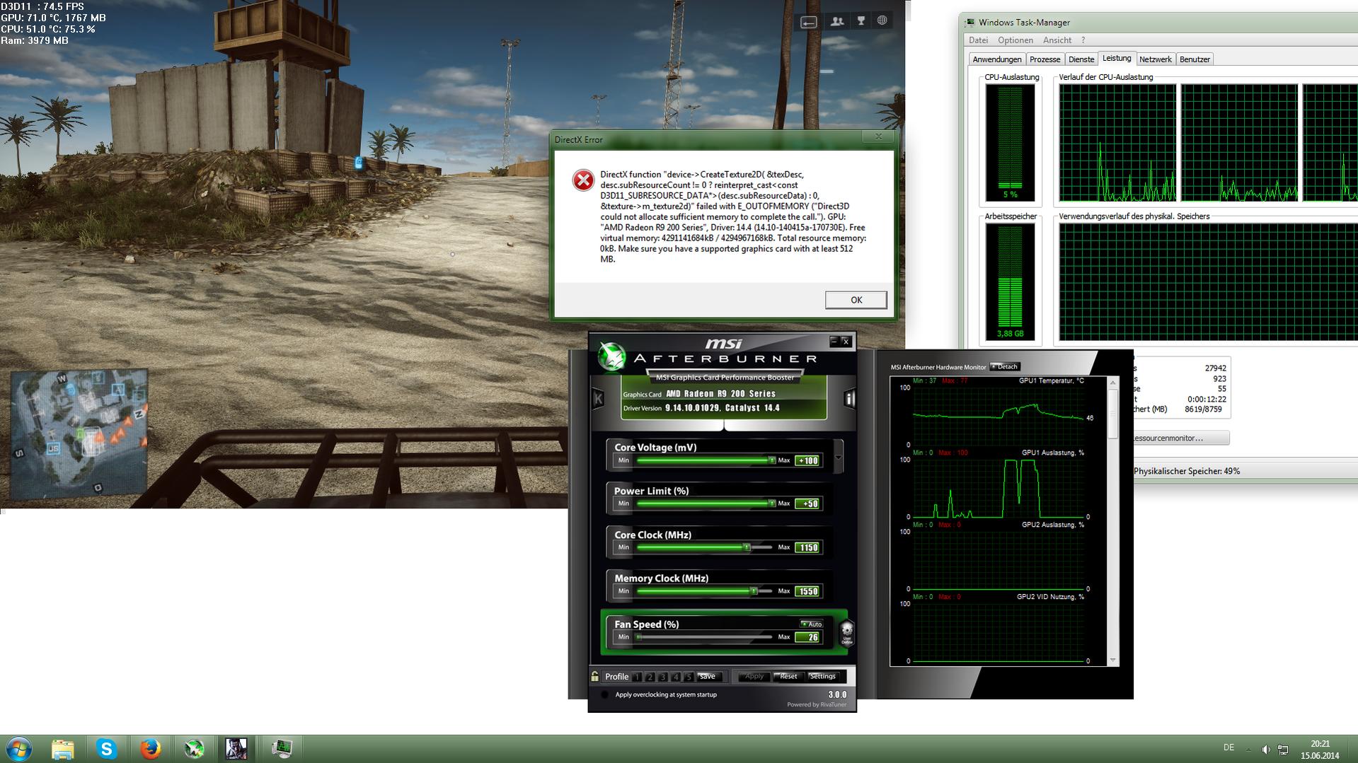 Ok, ich spiele aber normalerweise: -37 1000/1300. Kommt auch Error bei +100 1100/1500. Kann es sein das die Karte Kaputt ist? Die Verpackung war beschädigt. Ich vermute das die Karte hingefallen ist. Jetzt kommt sogar Error bei 1000/1300. Nur bei BF4