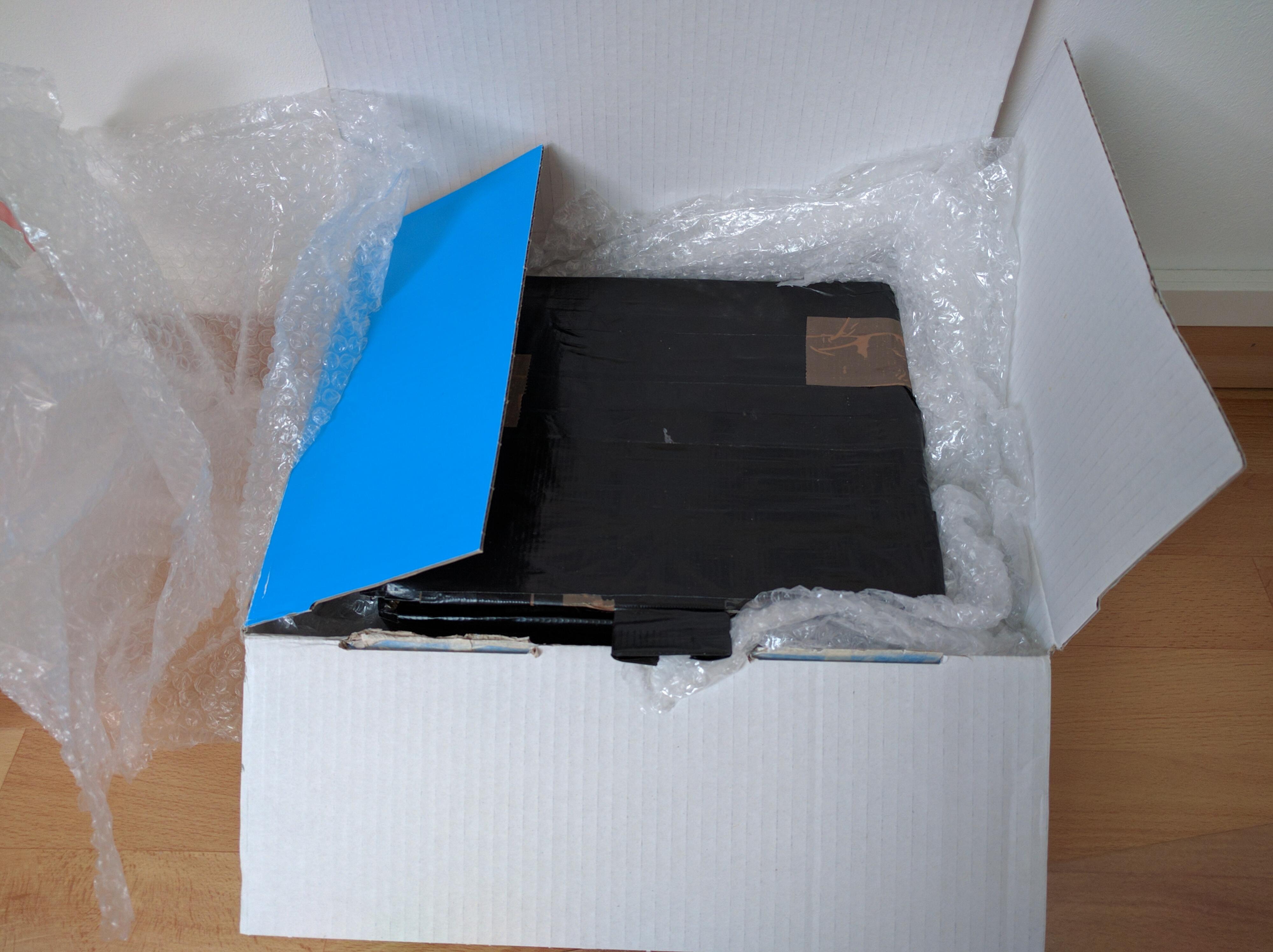 Ursprünglich wurde das MSTG einfach in dieser Kiste verschickt - bis r3m4 alles schwarz beklebt hat und die Post das Teil nicht mehr annehmen wollte. So ungefähr hab ich das zumindest in Erinnerung.