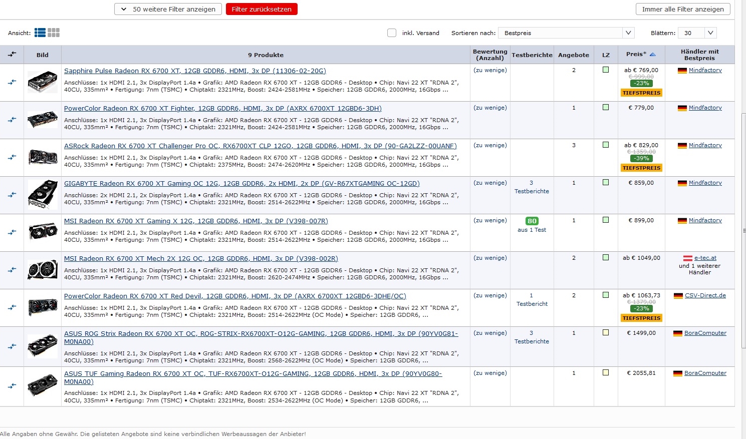 6800, 6800XT sind selten und dann schnell vergriffen.
