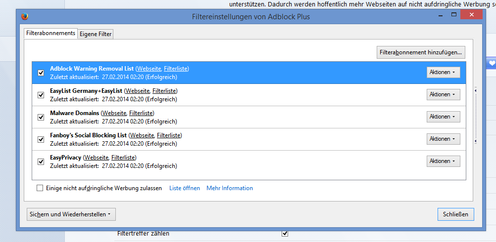 Redest du vom Addon oder von der Filterliste? FF findet kein Update.