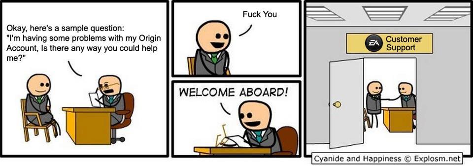 Erinnert mich ein bisschen an mein Ticket nach dem Release von Bf3. Mein Account wurde für das Backend nicht freigeschaltet, Ticket erstellt das nach 3 Monaten Kommentarlos geschlossen wurde :/