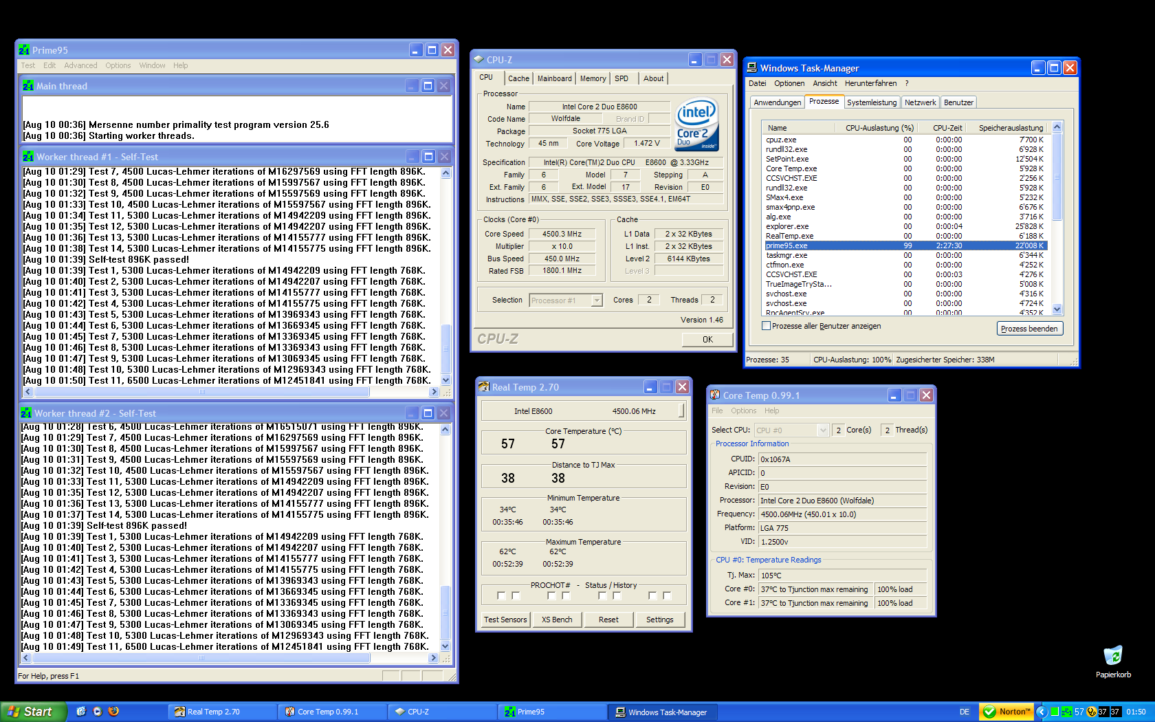Getestet bei einer Raumtemperatur von 26°C - 28°C, und jeweils 2h Prime Custom-Test.