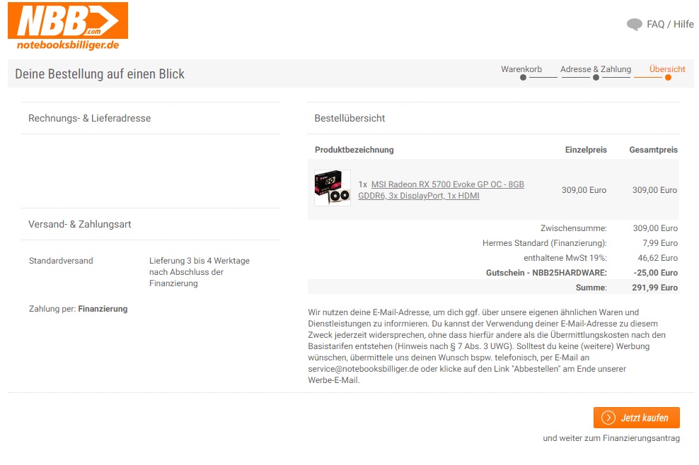 Komme also auf 283€ für diese RX 5700. Plus noch 2 Games gratis.
