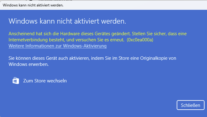 die Sicherung eines Systems von vor einem Jahr einzuspielen. Dieses System habe ich damals stillgelegt inklusive der Windows-Lizenz. Soweit so gut. Bei mir steht, dass Windows keinen Product Key gefunden hat (Fehlercode: 0xC004F312). Ich finde das damalige Gerät auch nicht mehr in der Liste meiner Geräte, wenn ich auf mein MS-Konto zugreife.