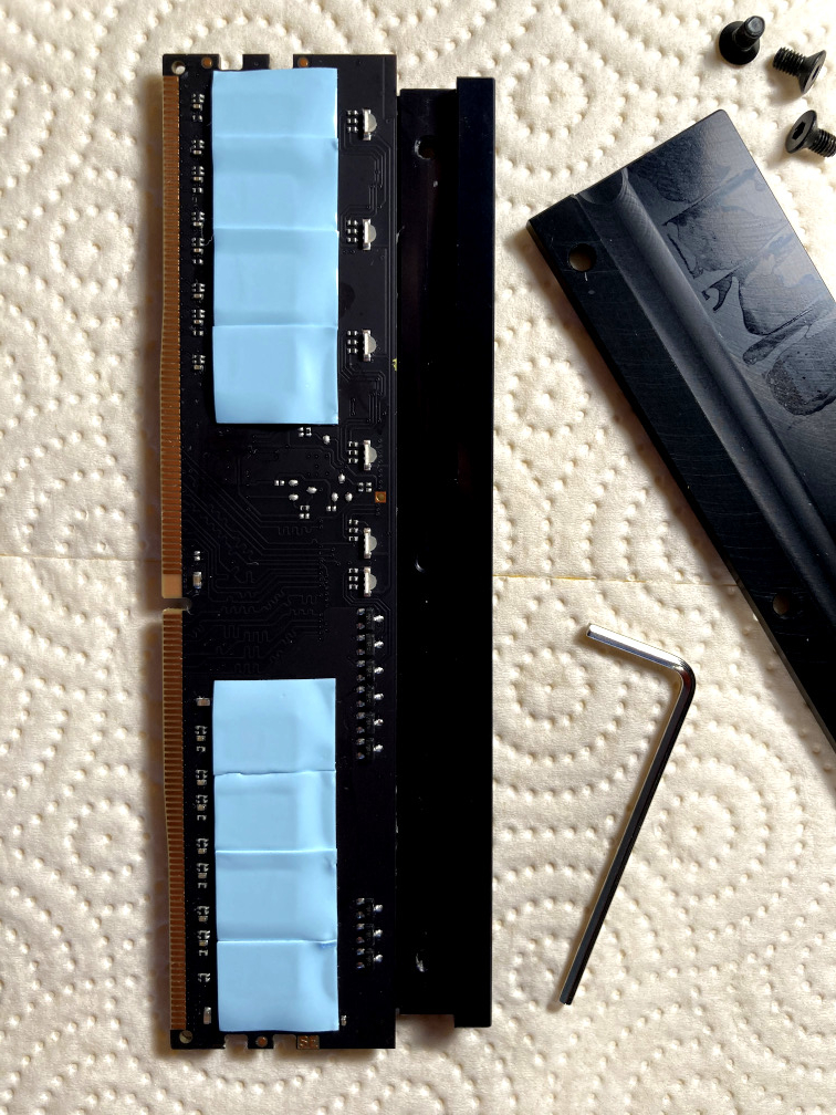 Auch durch Experimentieren habe ich die Antwort nicht gefunden. Die Speicherbausteine des dritten Moduls wurden neu mit Pads belegt. Kein Unterschied bei den Temps von DIMM[2], also auch DIMM[1] neu gemacht. Immer noch kein klares Ergebnis.