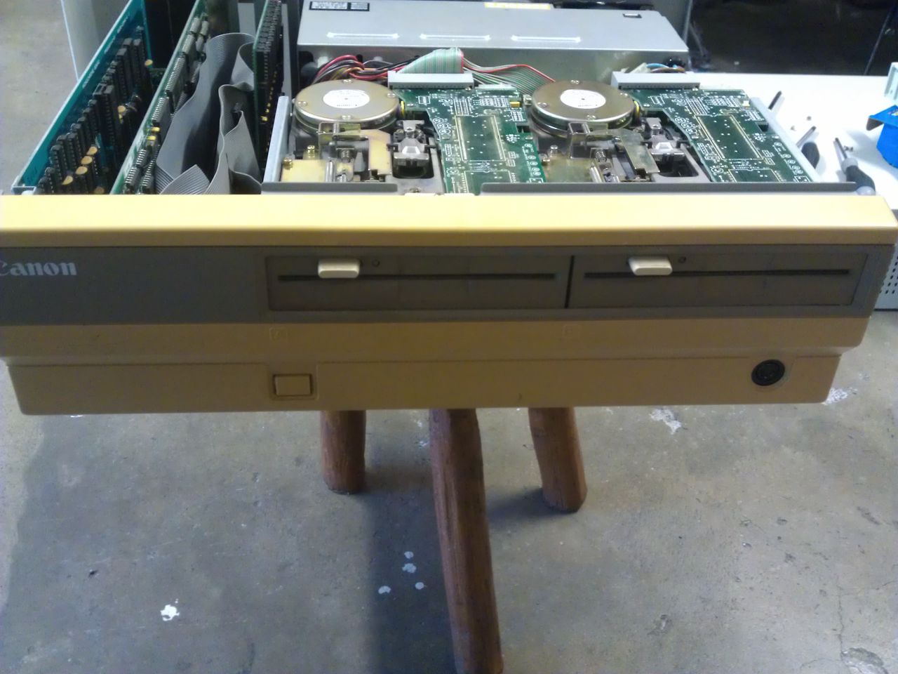 Begin that this pc in the time was used and working, I think that it's configured to work as primary device the external HDD, and Floppy Drives as maybe secondary...but in the FFD A I've found an folded cardboard not for protect the heads, but it seems as for unused it...the pc in this condition work, but I would use without the external HD.