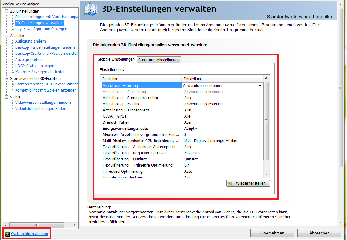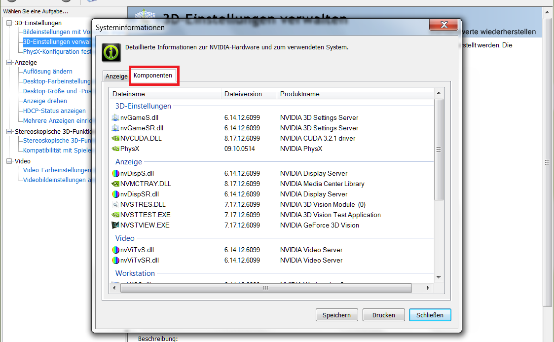 Was sagen die Systeminformationen unter der NVIDIA Systemsteuerung ?