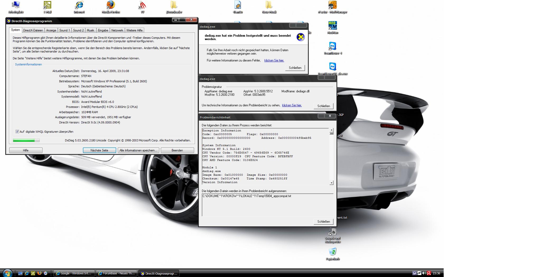 Immer wenn man dxdiag aufruft kommt die Medung: