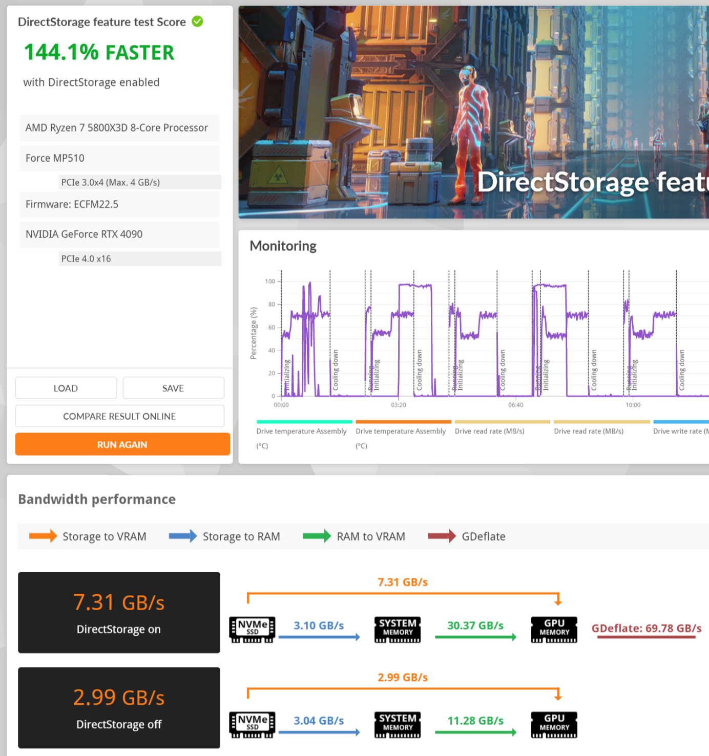 System: Corsair Force MP510 2 TB, 5800X3D, 4090, PCI Express 3.0 x4