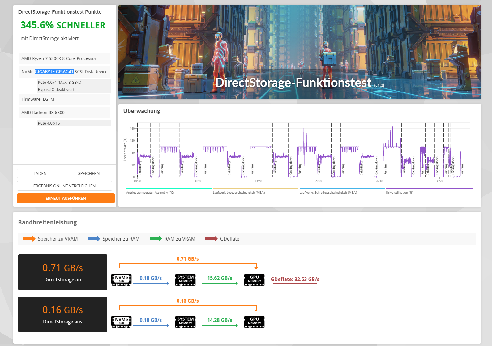 Ergebnis DirectStorage AUS (ohne GB/s): 0,16