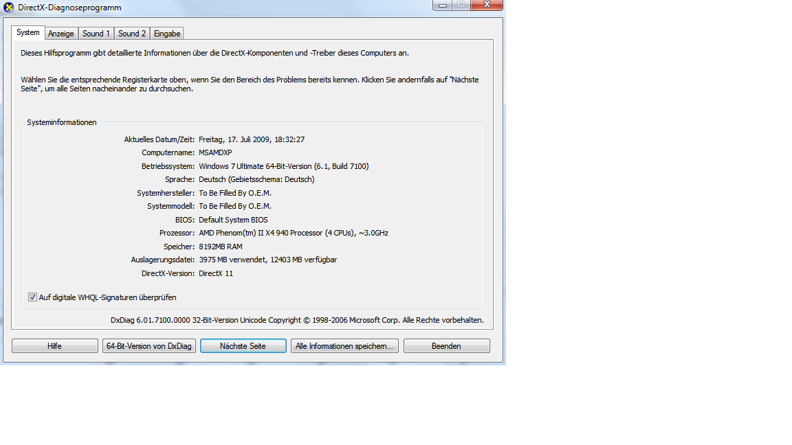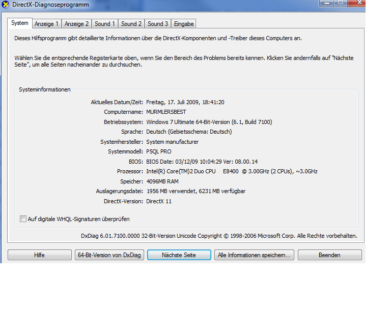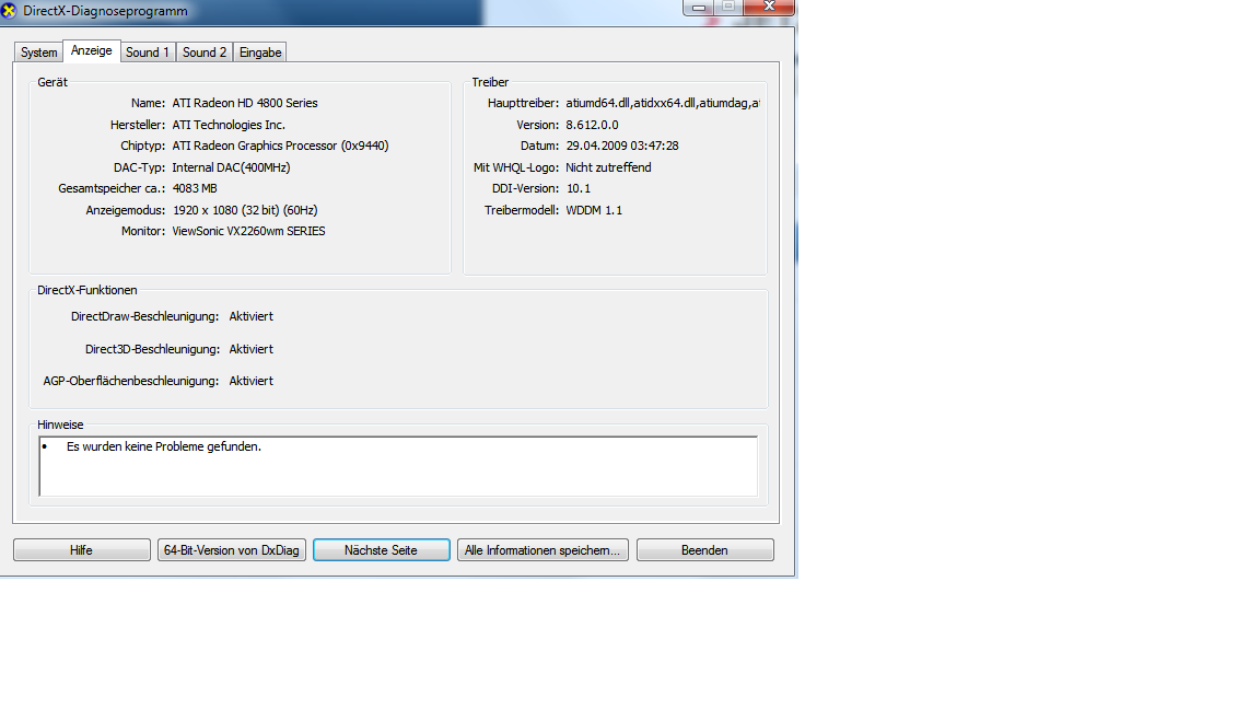 Die DirectX Version habe ich mit Everest ausgelesen.