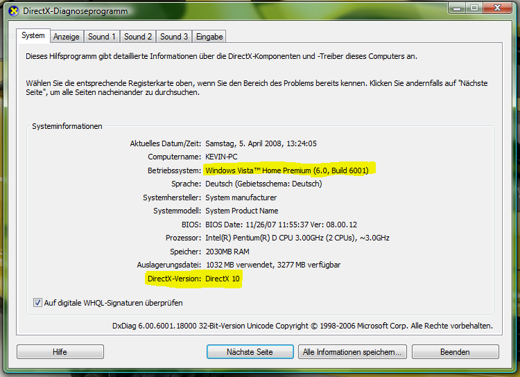 habe seit kurzem ein notebook von dell mit einer 8600 gt und directx 10. nun habe ich neulich einige benchmarks durchgeführt und da diese schon älter sind forderte mich vista home premium dazu auf directx 9 zu installieren. das habe ich dann gemacht weil die benches vorher nicht liefen. nun frage ich mich ob directx 9 directx 10 überspielt hat oder nicht. wenn ich unter ausführen nach directx suche dann steht im verzeichnis einfach nur directx 10. wenn ich everest und sisoft sandra öffne steht dort directx 9.0c. welche version ist nun installiert und was ist die aktuellste directx 10 version?
