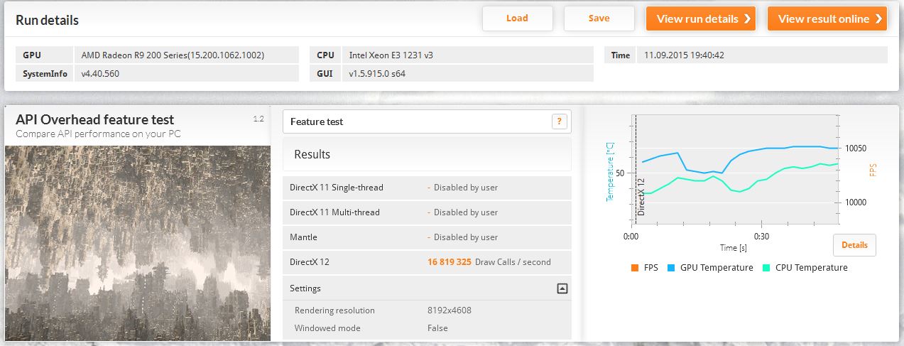 Naja sowohl für AMD-GPUs ist das Benchmark eher eine Worst-Case situation trotz neuen APIs. Wenn man sich mal ausrechnet wie viele Polygone die GPU pro Sekunde als peak schaffen sollte (Beispiel Geforce 980 GTX mit 6 Mil Polygone/s) und wie viele sie tatsächlich in dem Benchmark schafft (10 Mil Polygone/s), dann merkt man dass die Auslastung der GPU mit extrem schlecht ist. Bei AMD-GPUs sieht es nicht viel besser aus.Der Test sagt sehr viel aus. Er sagt schon mal aus das der Rasterizer und der Polygonendurchsatz schon mal kein Problem für die AMD Karten darstellen. Das sah unter DX11 noch anderster aus.