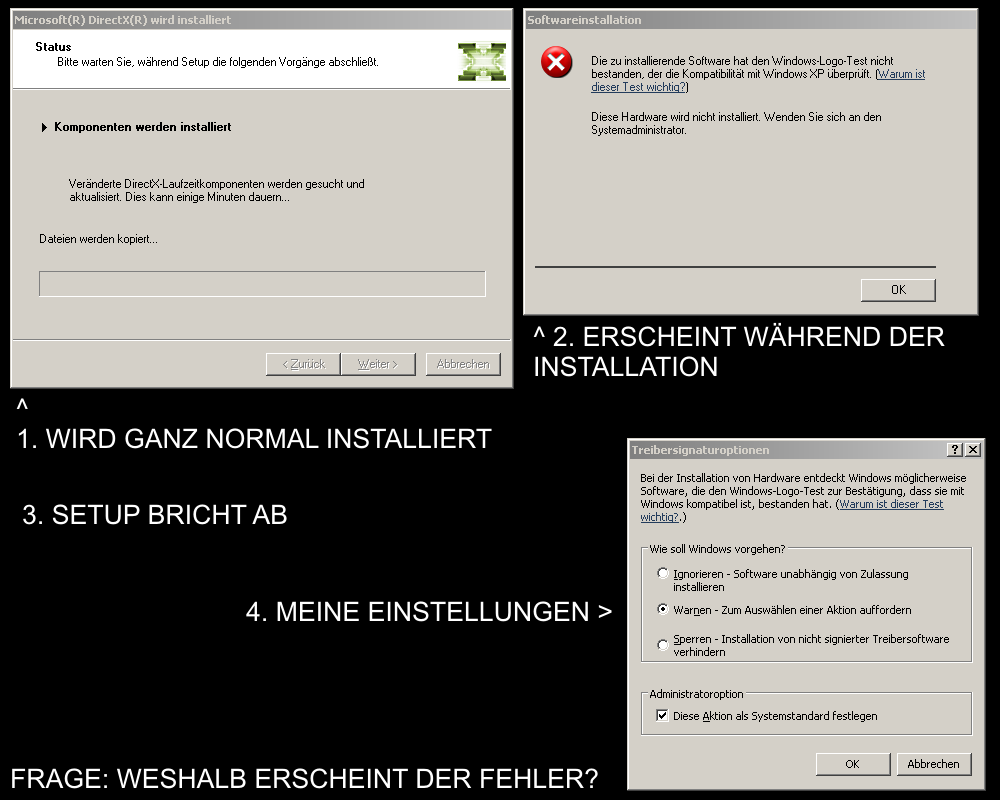 Ich habe eine Offline-DirectX9 Version, die die Dateien nciht von MS downloadet. Ich installiere es unter Windows XP.