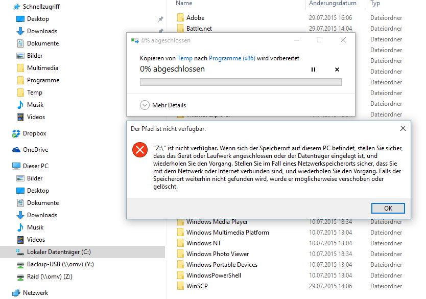 Ein neues Features in Windows 10 oder warum muss ich den Umweg über "Eigene Dateien" gehen? Warum werden Kopiervoränge von Netzlaufwerken geblockt?
