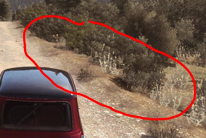 Baum- und Grastexturen weisen eine Art Raster auf, besonders wenn die Kantenglättung nicht auf dem Maximum steht. Tritt nur bei AMD Grafikkarten auf. Sieht wirklich grausam aus.