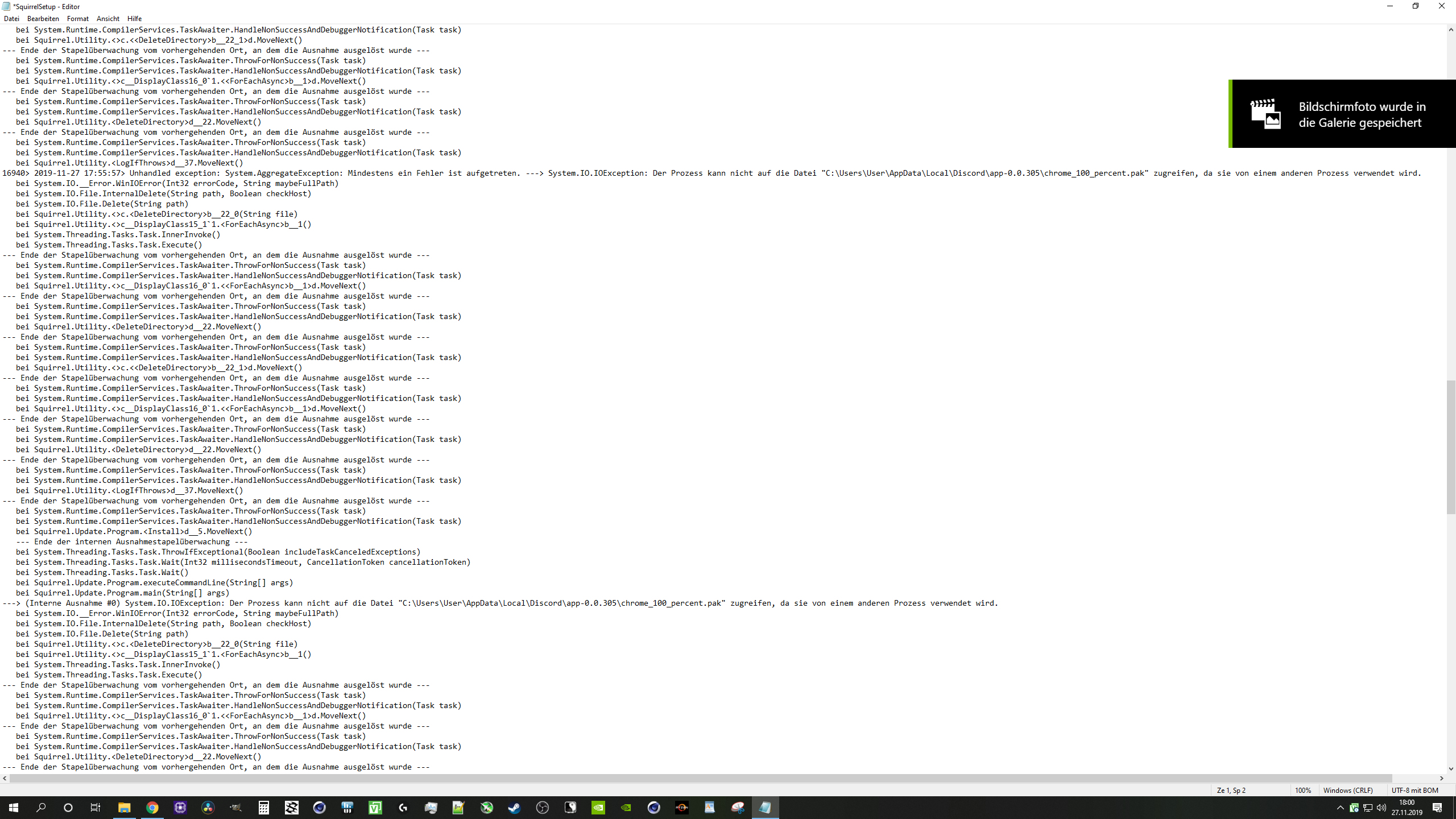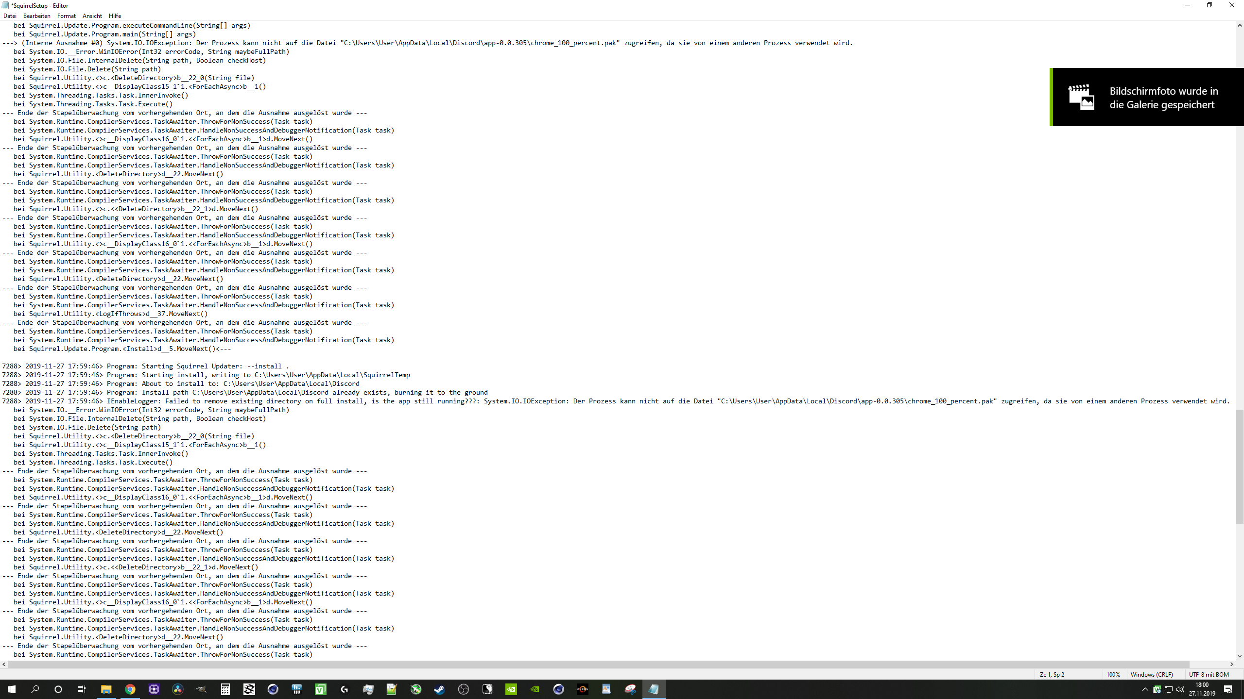 Bei mir will sich discord nicht installieren. Es öffnet sich immer ein error log log.