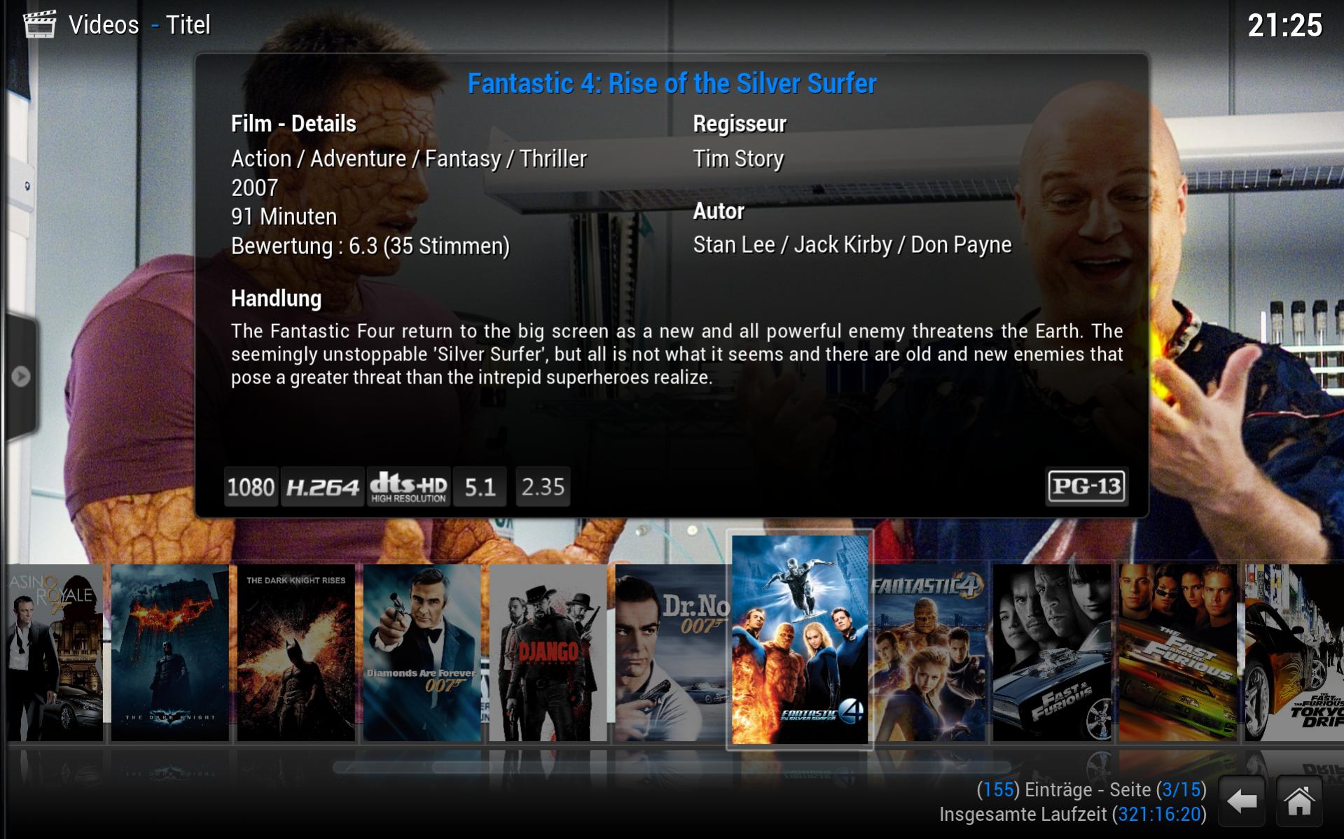 Alle restlichen "einzelnen" Filme befinden sich (über DLNA automatisch Alpabetisch sortiert) in dem Ordner Videos und alle Serien in dem Ordner Serien auf der 2ten 3 TB Festplatte. (Ebenso wie Bilder und Musik)
