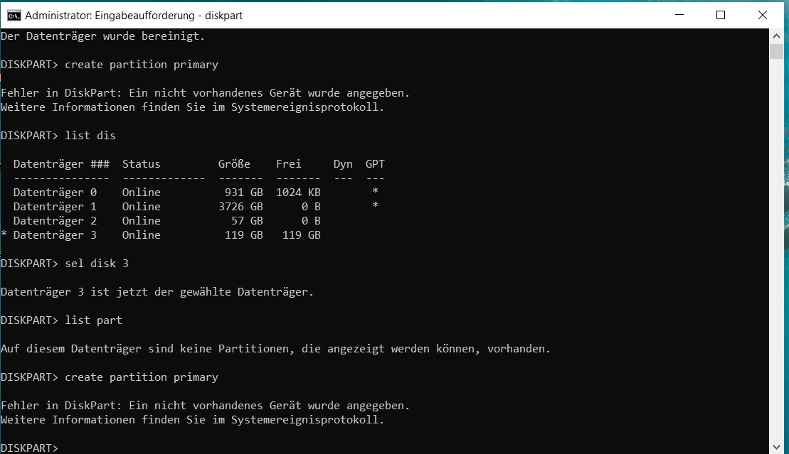 Hallo gute Computerbase- community, warum wird diese Meldung angezeigt " Fehler in diskpart : ein nicht vorhandes gerät wurde angegeben"