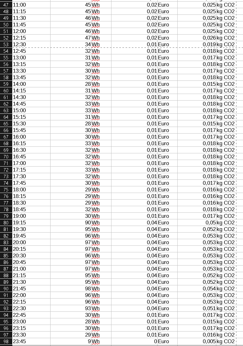 Da wäre durchaus interessant, wie diese sich auf den Gesamtverbrauch auswirken, jedoch kann ich da nur Momentanwerte Ablesen und keine Schwankungen erfassen.