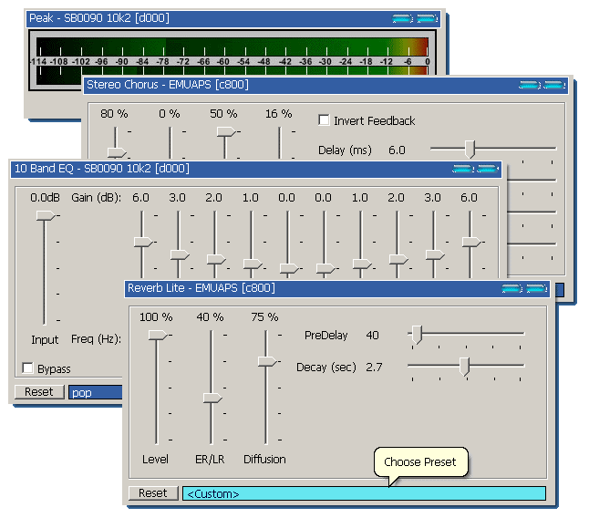 Ein großes Thema sind ja die EMU Chips, allen voran der noch aktuelle X-Fi, die mit ihrem DSP sehr viele Möglichkeiten bieten. Aber EAX wird mittlerweile kaum noch von einem Spiel genutzt und somit fristet der DSP ein Schattendasein beim EQ und Crystalizer.