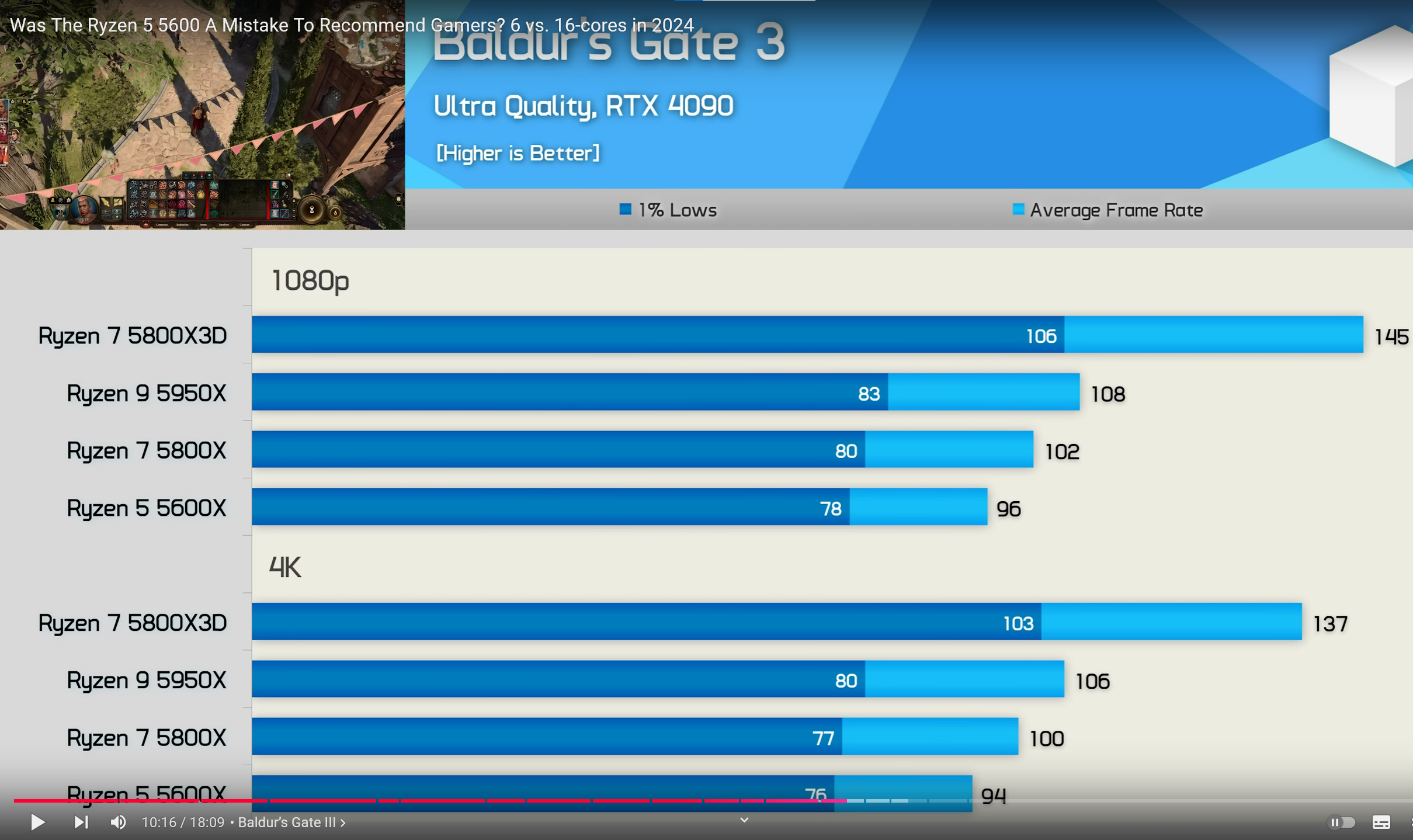3950X, 5800X, 5800X3D mit 3090 Ti, das in 4K(upscaled) im GPU Limit war und dann 2 Jahre später mit RTX 4090 nun in 4K(upscaled) größere Vorteile zeigt als 2 jahre zuvor noch die 1080p Messungen.