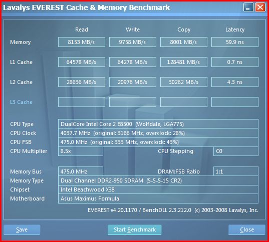 Dadurch habe ich einen CPU-Takt von 4038MHz (=475*8,5) erreicht.