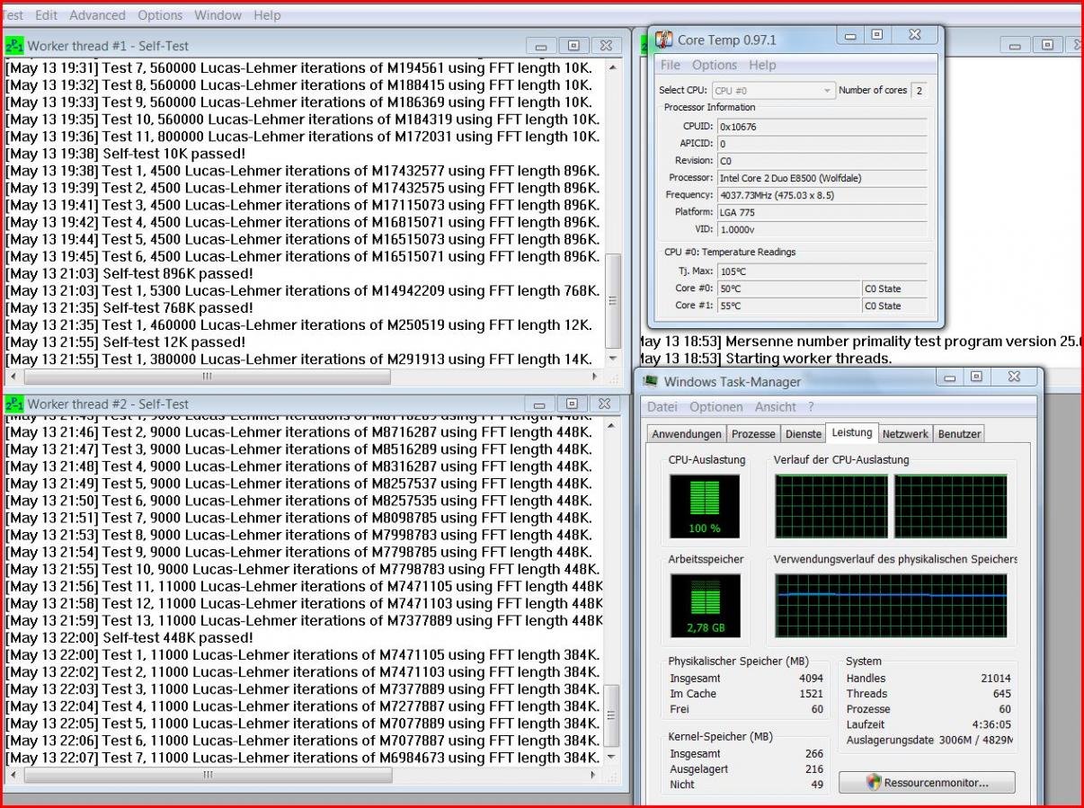P.S. Nach 3 Stunden prime95 zeigte mir Everest Ult. plötzlich keine North Bridge Temps. mehr an. Auch unter Motherboard, SPD war nur noch ein "leeres Blatt" angeziegt worden.