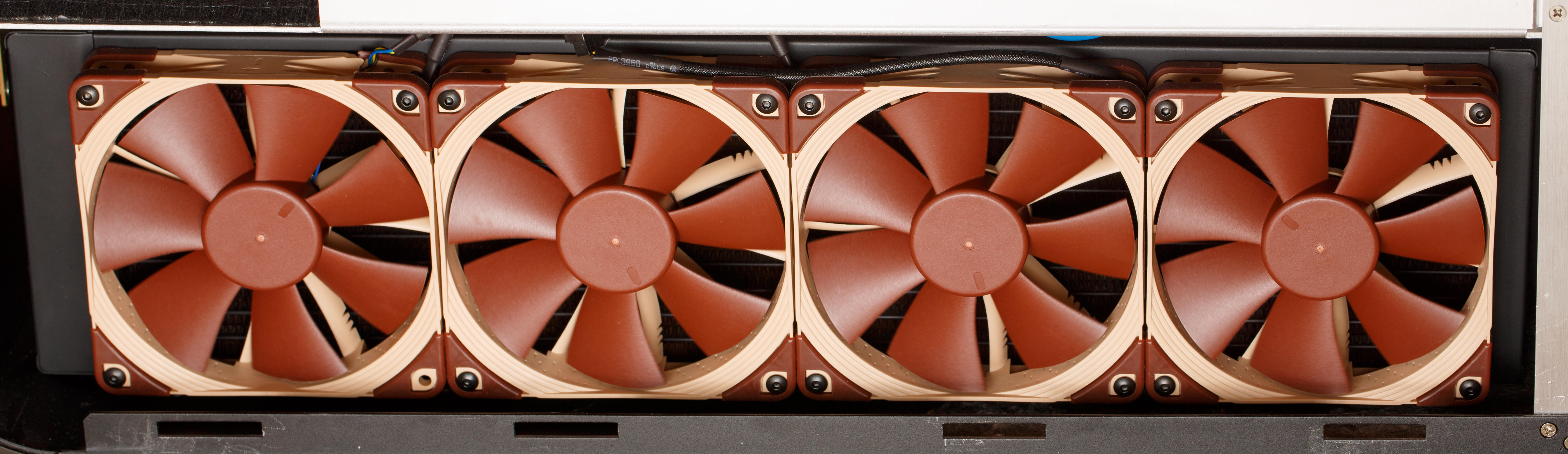 So laufen die 120er etwas schneller als die 140er (um für gleiche Lautstärke zu sorgen). Die beiden Pull-Lüfter auf dem 280er sind auf einem separaten Kanal und knapp langsamer als die Push-Lüfter. Das unterbindet lästige Resonanzen