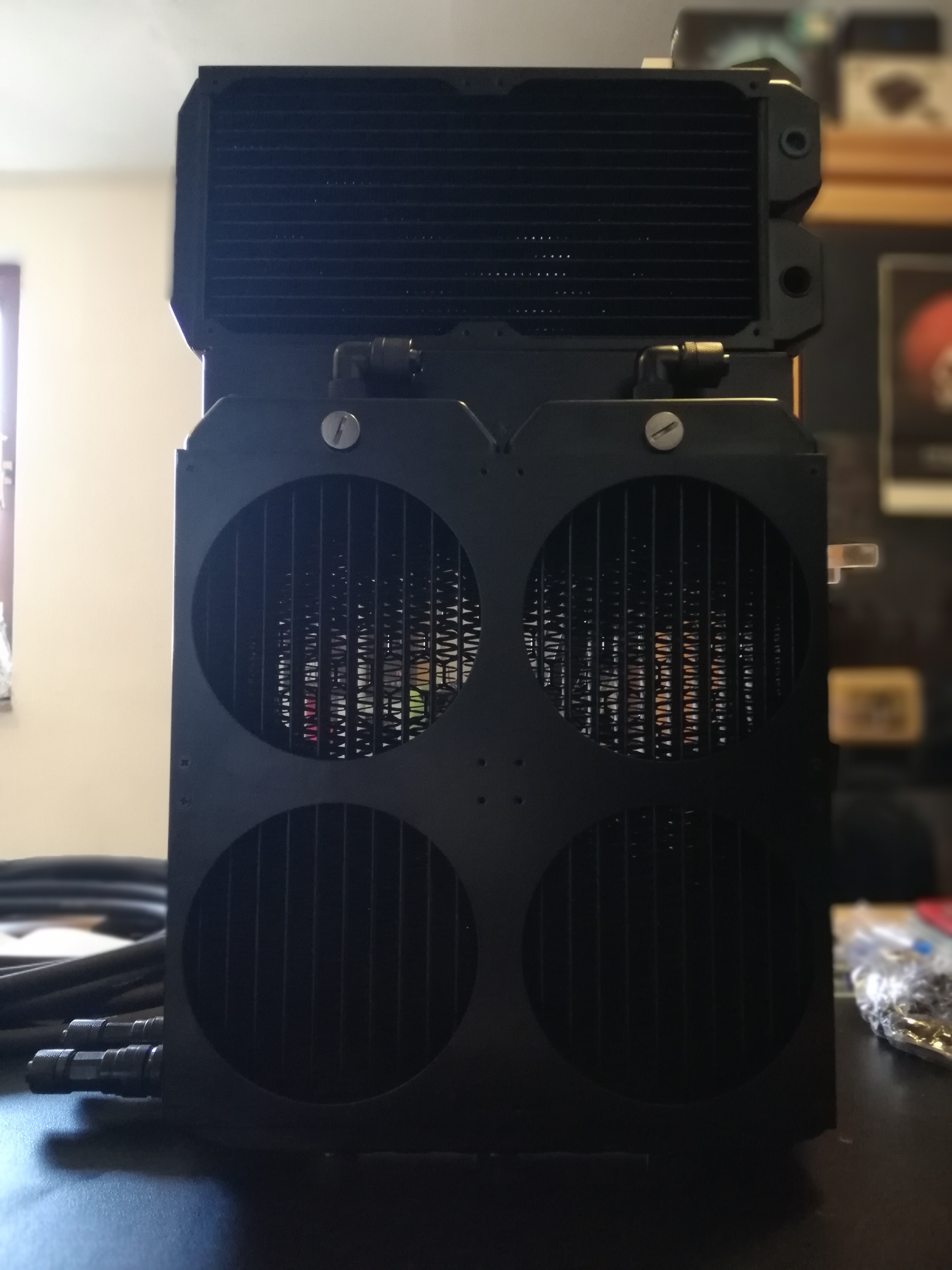 Echt? Abgefahren, hätte nicht gedacht, dass das Gehäuse so breit ist. Sehr cool, wärst du so lieb mal ein Foto von der Seite mit dem Netzteil und dem zweiten Radiator bei geöffnetem Seiten Teil zu machen?