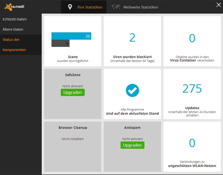 Abgesehen davon stören mich die fehlenden Meldungen oder die verbuggten Nachrichten, die man einmal mit einem Klick aufs X wegklicken muss, soweit nicht, solange sie klein und dezent bleiben und die Virensignaturen schön im Hintergrund aktualisiert werden, was immernoch der Fall ist.