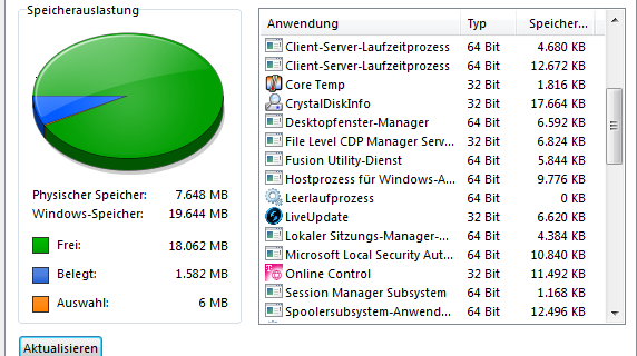 Bitte nochmal mit Ressourcenmonitor (Task-Manager => Leistung => Ressourcenmonitor), bzw. mit RAM-Map, anstatt dieses Schönredetool (wow, soviel freier Speicher! Ich bin so neidisch!Hier meine Auslastung: