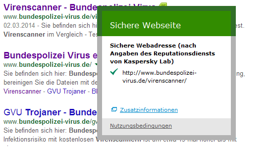 MyLife schrieb:Ich nutze Chrome oder den IE11. Da hilft mir NoScript nicht weiter. Allerdings bremse ich den Browser nicht unnötig aus. Ich bei nutze nur Adblock und die Kaspersky AddOns. Mehr brauche ich auch nicht. Übrigens sagte mir das betrachten der Seite schon von alleine, daß die vielleicht nicht ganz sauber ist. Allerdings ist Kaspersky die Seite als sauber ein und wurde auch schon von Kasperky überprüft. Weil wäre das K nicht grün und diese Meldung wäre nicht da.