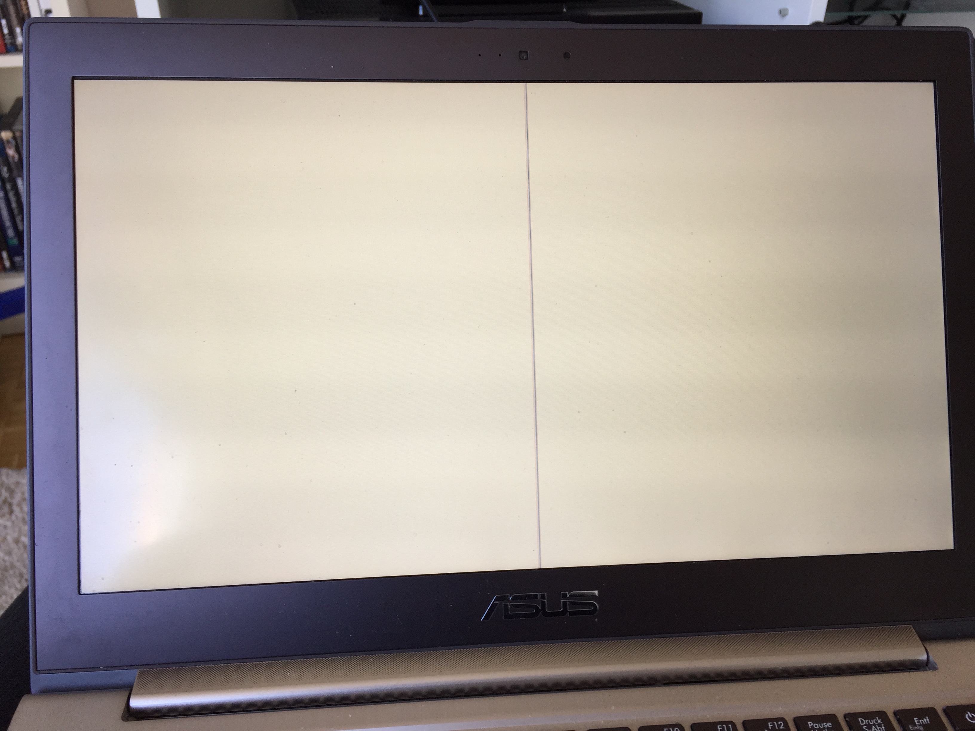 seit gestern Abend ist bei meinem Asus Zenbook das 13,3" große Display leider nicht mehr funktionstüchtig. Ich habe das Display relativ sanft nach hinten geklappt und auf einmal wurde nur noch ein buntes, flackerndes Bild angezeigt (siehe Anhang).