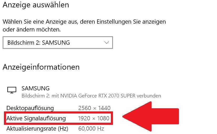 Obwohl der Fernseher 1920x1080 hat steht bei der Aktiven Signalauflösung nur 1440x900,