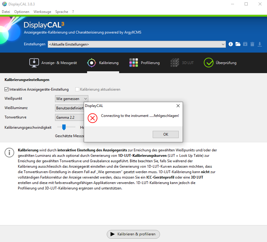 DisplayCAL keine Verbindung zum i1Display Pro