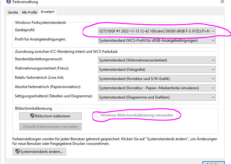 Ich habe eine ältere Radeon GPU, Benutzerdefinierte Farbe ist deaktiviert in der RadeonSoftware. Auch hier meine Frage, wo sehe ich nachträglich auf was kalibriert wurde?